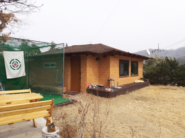 남향, 대350㎡(105.9평)+도로, 한옥 통나무 사개맞춤구조, 아궁이 황토방, 벽난로, 잔디, 텃밭, 지하수, 정화조 |