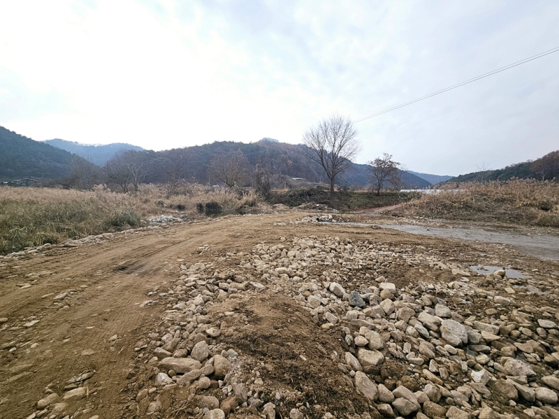 - 하천 건너오는 도로는 마을이장과 주민들이 잡석을 깔아놓아서 차량도로로 사용하고 있으며