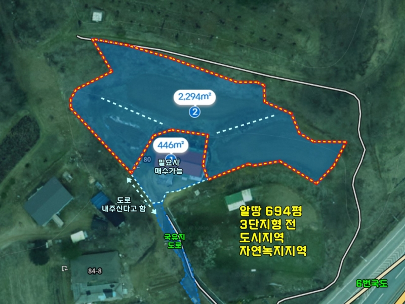 6번국도와 마을을 내려다보는 시원한 조망이 나오며 완경사의 밭으로 사용중입니다.