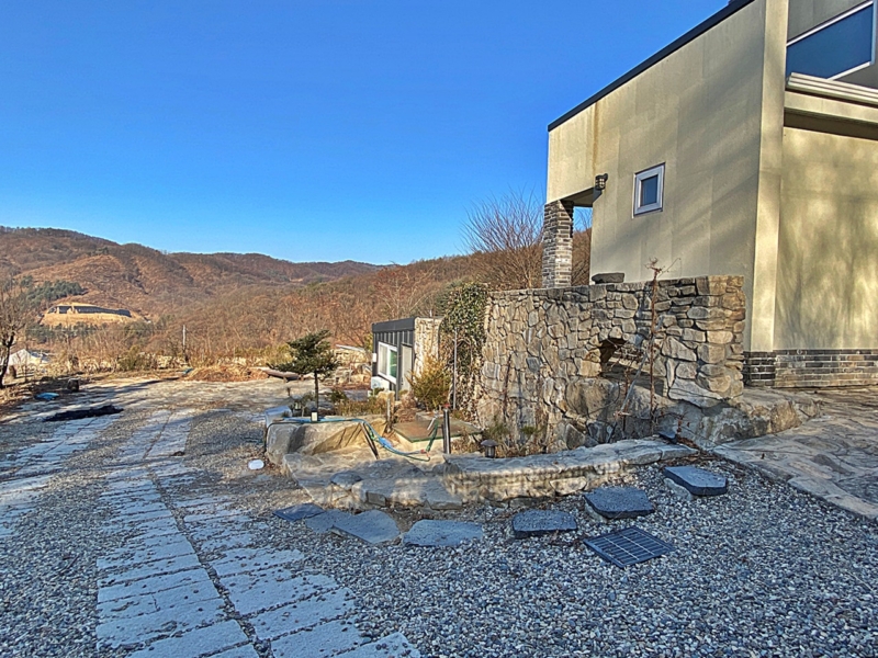 | 간략설명 | 대1090㎡(329.7평)+도로지분, 붙박이장, 드레스룸, 외부 창고, 독일식 창호, 지하수, 정화조 건물은 남서향이며 전망은 서향으로 조망, 2018년 준공, 목구조주택 38평, 경량철골조 창고 20평 직영건축, 주말주택으로 사용중, 지하수대공 100m, 붙박이장, 안방 드레스룸, 다용도실 1층 방2개, 거실, 주방, 욕실1개/ 2층 방1개, 거실, 주방, 욕실1개 주택과 창고부지등 2단으로 나눠진 정원마당, 정원에 야생화와 산야초가 많이 심어져있음 주택경계 돌담 시공, 4m 시멘트포장도로, 도로지분 보유 마을입구 도로확장 공사중에 있으며 26년 2월초 완공예정으로 공지되어 있음 ( 25년 12월 현재 공사중이라 돌아들어가는 마을진입로를 이용해야됨 ) 원주민 마을과 떨어져 도로 끝단에 위치한 임야에 둘러쌓인지형,
