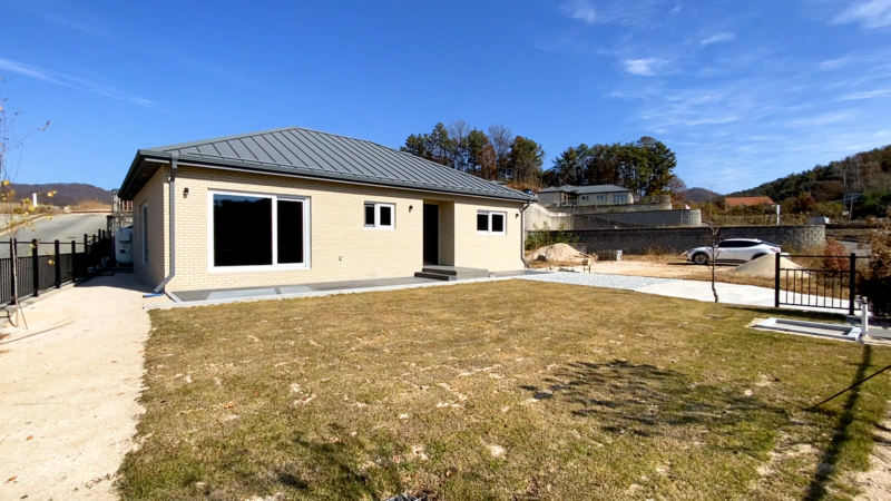 계곡인근의 자연환경 좋은 집, 단층구조의 편리한 설계로 어르신 살기 좋은 신축 주택입니다.