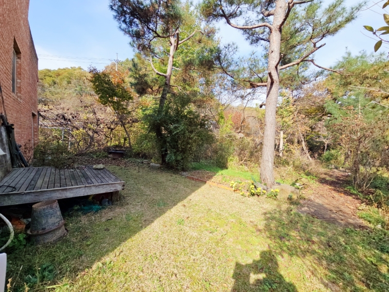 정원은 넓으며 주로 밭으로 이용되며 옥수수, 소나무묘목, 유실수가 많음