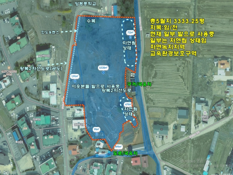 | 간략설명 | 남향, 임8637㎡(2612.7평), 전2382㎡(720.55평), 평탄지/밭으로 사용중, 저스/2차선도로200m, 양평역 1km |