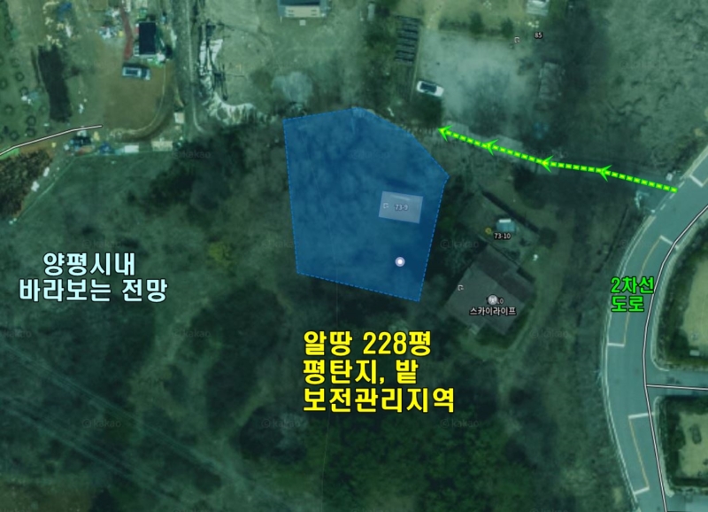 | 간략설명 | 남향, 전755㎡(228.39평), 평탄지/밭으로 사용중, 버스 300m, 2차선도로 30m, 편의시설 / 양평역 4km |