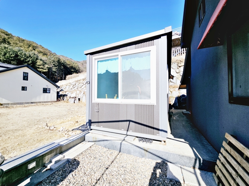 지하1층 차고 11.15평, 이동식 별채원룸&창고 7평 (원룸바닥 전기판넬), 공동지하수, 오수관, 태양광