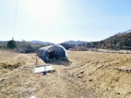 평탄~완경사지, 주말농장으로 직접경작중,산업용 하우스 (검정색) 설치됨