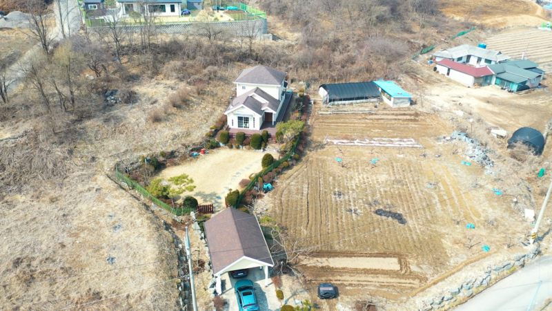 경사없는 편안한 진입로, 귀농형으로 알맞은 대형텃밭, 주택경계에 꽃나무 가득 잘 관리된 정원,