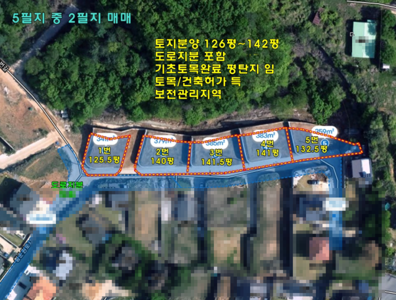 건축허가 받아두셨다고 함, 5필지 중 2필지만 매매하시는 조건으로,매수인 원하는 필지 선택 가능함