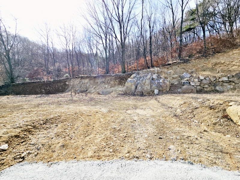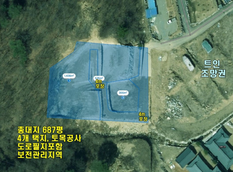 동향이며 북동~동~남동향으로 조망권 나옴,보전관리지역, 완경사지 2단 지형