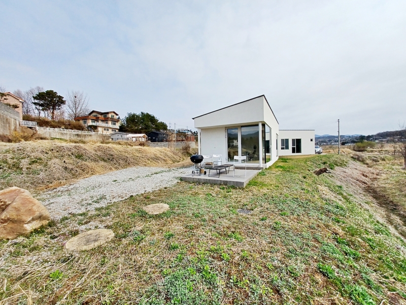 | 간략설명 | 동~서~남향의 탁 트인 마을 및 산 전망,2022년 준공, 목조, 0/1층 구조, 주택 44.44평 소유자 직영건축 및 실거주,LPG가스보일러/ 상수도/ 정화조 EBS \'건축탐구집\' 출현 주택 1층 방 3개, 거실, 주방, 욕실 2개, 다용도실 2개, 드레스룸 1개,천정형 시스템 에어컨 5대, 천정형 공기청정기, 빌트인 가전 (신발장, 오븐, 식기세척기), 인덕션, 벽면 규조토, 바닥 원목마루 현관 옆 내부 창고 구비, 복도 및 안방에서 야외 테라스로 직접 연결되는 동선 주방 옆 다용도실은 세탁실로 활용 중이며, 주택 뒷편 야외와 연결된 단독 보일러실 별도 위치 현관에서 바라본 복도 끝은 매입형 테라스 구조 임 , 잔디마당. 야외 수돗가/수도, 자갈 시공 테라스 타일 마감, 외부 주차 3대 가능 ,3~4m 시멘트 포장도로, 사도, 도로지분 있음 국유지 도로와 인접해 있으며,진입로 일부 아스팔트 구간 노후화 있음 버스정류장 550m, 2차선도로 350m 거리