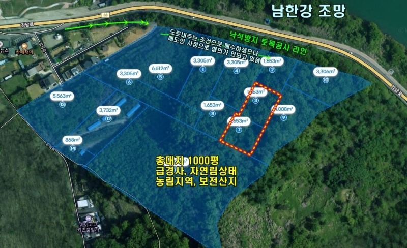 북동향으로 남한강 전망 나오는 부지,농림지역, 보전산지, 임업용산지
