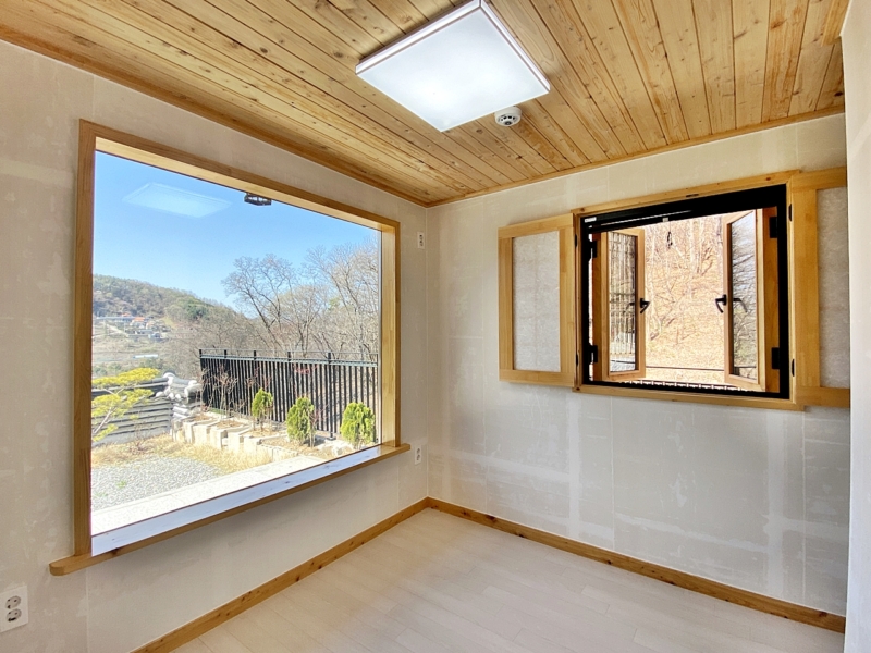 창호는 한옥스타일 이중창으로 안밖으로 각각 열림, 6M 포장도로, 현황도로(개인 임야), 도로지분 있음