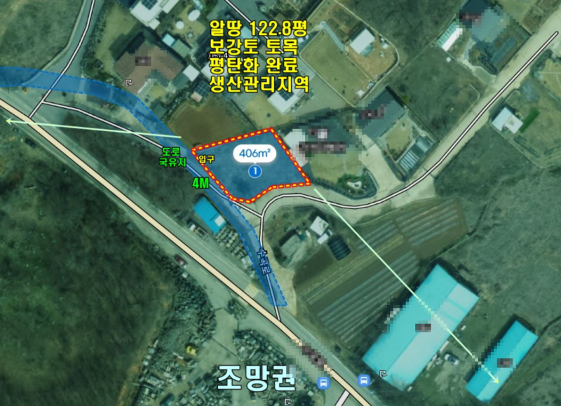 생산관리지역, 보강토 토목완료, 평탄화 완료,접한도로보다 지대가 높음