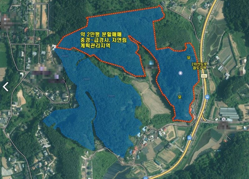 | 간략설명 | 2만평이하도 분할매매 협의가능하며 조건 별도협의 필요함,필지내 묘가 있으며 평수제외 및 협의 필요함 위치와 지형에 따라서 남향, 동향등으로 조망권 있음,계획관리지역, 중경~급경사지, 자연림 일부 지방도 2차선도로 접해있음 (접도구역),1차적으로 2차선도로쪽으로 진입 개설가능 2차선도로 접도구역,일부 위치에따라서 마을도로 및 사도로 사용협의 가능하다고 함 망능리 마을회관 2차선도로 삼거리 인근에 위치한 임야,지방도 2차선도로 및 버스정류장 인접 용문면사무소 약 7.2KM, 용문시내 및 지하철 용문역 약 8.2KM |