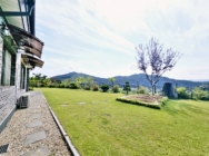 마당에 화단공간, 텃밭공간이 있음.경계휀스, 평탄지 정원수 및 잔디정원