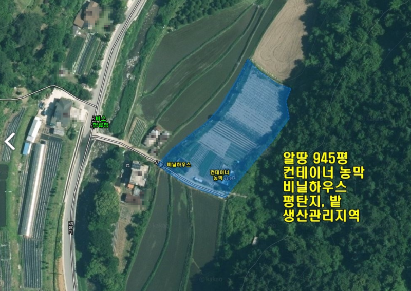 | 간략설명 | 평탄지 남서향이며 전망은 북서~북동으로 나옴 ,생산관리지역, 평탄지 밭 필지내 신고 안된 컨테이너 농막 1동 있음 ,비닐하우스 1동과 이동식 화장실도 있음 야외에 양봉 하고 있음 (토종벌),컨테이너 농막 안 싱크대 있음,두릅나무,감나무,배나무,마가목나무, 들깨,배추,무,고추,팥,땅콩,대추,호박,매실,포도,복숭아 등 농사 짓고 계심 경계석축공사 되어 있음,접한도로와 지대가 비슷함,4m 포장도로, 현황도로접함, 사도로 필지일부 도로부지에 물려있는듯 함,산음리 마을내 임야 한쪽에 자리잡은 토지 산음휴양림달빛마을 550m,버스정류장 50m, 지방도 700m 거리 |