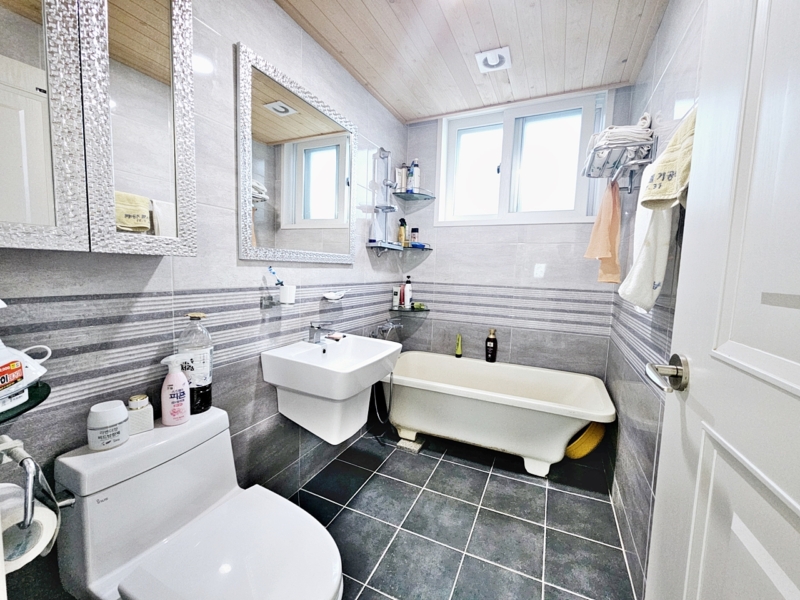 2층 방 2개, 작은주방, 욕실 1개, 데크난간 있음,넓은 옥상, 태양광 설치되어 있음 (전기세 조금 나온다고하심)