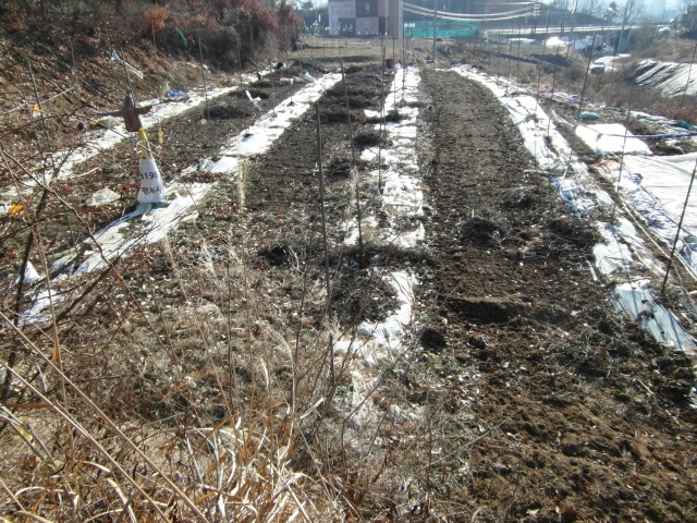 현재 밭으로 이용중인 토지로 남향으로 길쭉한 모양으로