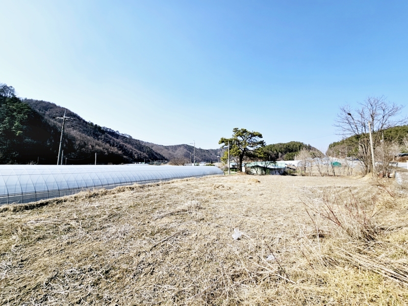 평탄지 남향이며 남향으로 트인 전망 있음,필지사이 구거 및 2차선도로등으로 지적상 3필지가 떨어져 있음