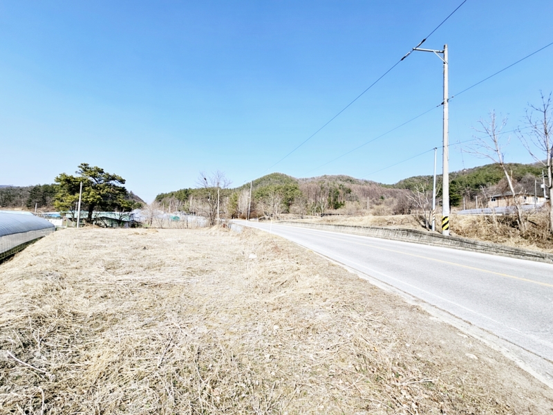 계정리 지방도 2차선도로변에 접해있는 토지,버스정류장 약 120m 거리,기차 양동역 및 양동면시내생활권 약 3.3km