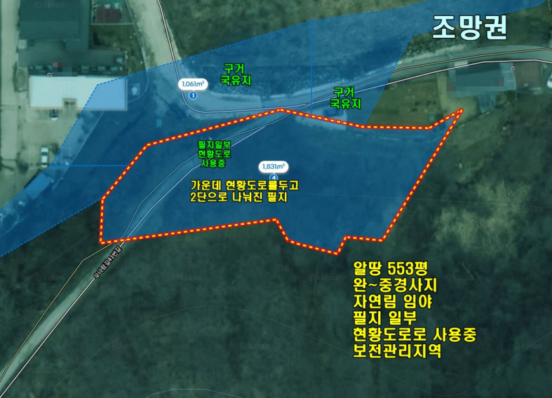 | 간략설명 | 전체적인 지형으로 인한 향은 북향이며, 조망권은 북~북동향으로 나옴 , 보전관리지역, 완~중경사지, 자연림 상태 필지일부 현황도로부지로 사용중,현황도로부지 사이로 아래토지와 위토지로 2단으로 나눠진상태 현상태 매매조건,4m포장도로, 사도, 현황도로, 필지일부 현황도로부지사용, 지방도에서 가까운 완경사지 임야 마을내 생생우리누리 요양병원, 우리누리 교회 소재하고 있음,지방도 2차선도로 및 버스정류장 약 400m 거리 지하철 용문역, 용문시내생활권 약 6.7km 거리 |