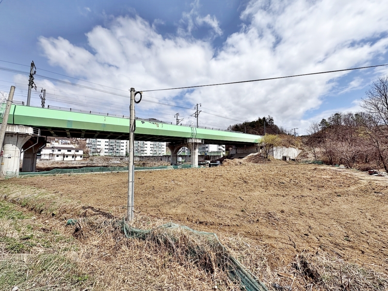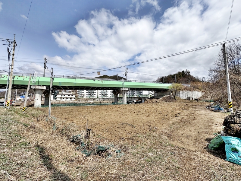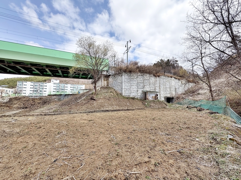 배산임수의 입지이며 토목 및 성토 완료로 정갈하게 다져진 부지, 녹색 그물망 및 펜스로 국유지 포함 경계 구분 했으며