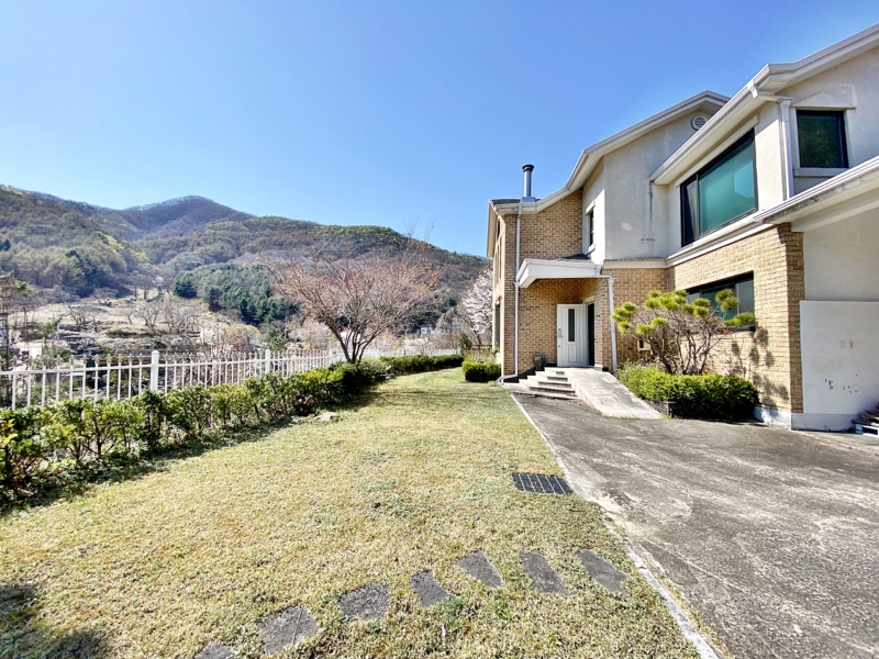 | 간략설명 | 남서향으로 고가 있어 트인 조망,2012년 준공 철콘조, 0/2층 구조, 주택 62.12평 소유자 직영건축 및 세컨하우스,LPG보일러+벽난로, 개별지하수, 오수관로(마을하수처리장 연결) 건축시 기초와 단열에 신경을 많이 쓰셨다고 함 1층 38평: 방2, 거실, 주방, 욕실1, 다용도실, 계단 밑 창고, 2층 24평 : 방2, 미니거실, 욕실1, 창고2, 테라스 현관 들어서면 정면에 계단이 있고, 우측에 방1 있음 좌측으로 거실이 있으며, 거실 맞은편에 미닫이문 있는 알파룸 공간 있음 1층은 방과 알파룸 포함하여 방2개임, 거실은 복층 구조로 천정고가 높고 채광이 좋음 주방은 ㄷ자형 구조이며, 연결된 다용도실에 개수대 설치됨 2층은 1층 거실이 내려다보이는 복도 양 끝으로 방이 있음,계단실 맞은편 작은 미니거실 있고, 복도에서 연결되는 창고방2개 있음 (창고방1개는 보일러실 겸함) 2층 안방 바깥쪽으로 테라스 공간 있음, 2층 욕실에 욕조와 샤워부스 모두 설치되어 있음 데크, 잔디마당, 디딤석, 경계조경수, 소나무, 꽃나무, 파고라, 철제울타리 주차는 차고 및 시멘트 포장된 공간에 넉넉하게 가능함 건물 뒷쪽 검은비닐은 풀나지 말라고 임시로 깔아둔거라 곧 걷어내실거라고 함 3M 포장도로, 사도, 도로지분 있음, 대석리 상촌계곡 상단의 소규모 전원주택지 내 위치 상촌계곡 하천 정비완료되었으며, 직선거리 약 130M |